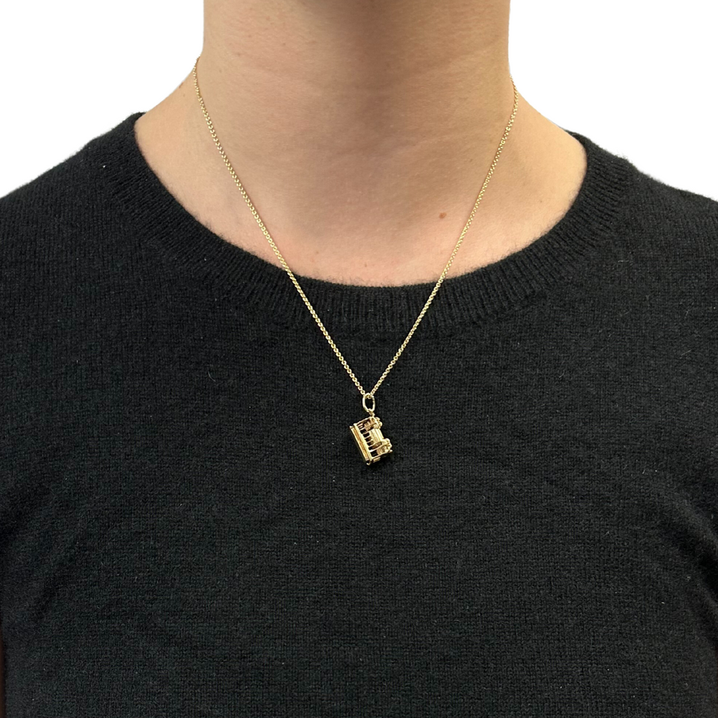 Wonderfully detailed vintage 14K yellow gold streetcar charm with Stanhope lens.