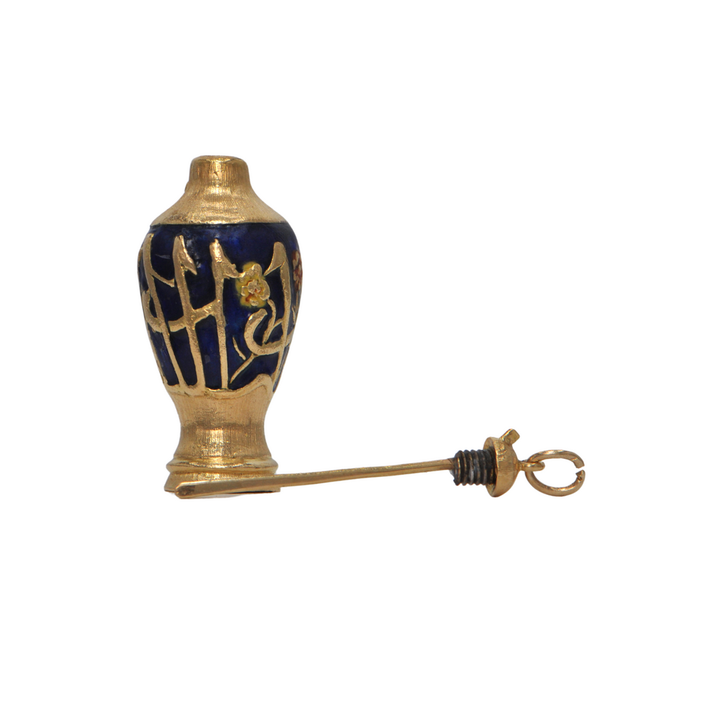 Vintage Italian Enamel 18K Gold Perfume Bottle Charm