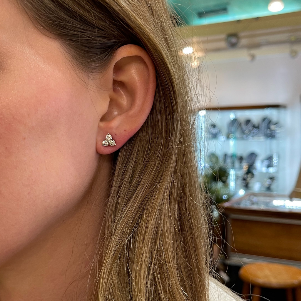 A simple yet classic set of three stone stud earrings. Custom-made for Daisy Exclusive by, Monica Savage.