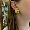 Fanciful pair of solid 18k yellow gold oval elephant clip earrings decorated with diamonds and rubies.
