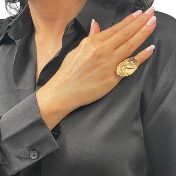 $2,150.0018k yellow gold Oval ring Nefertiti bust