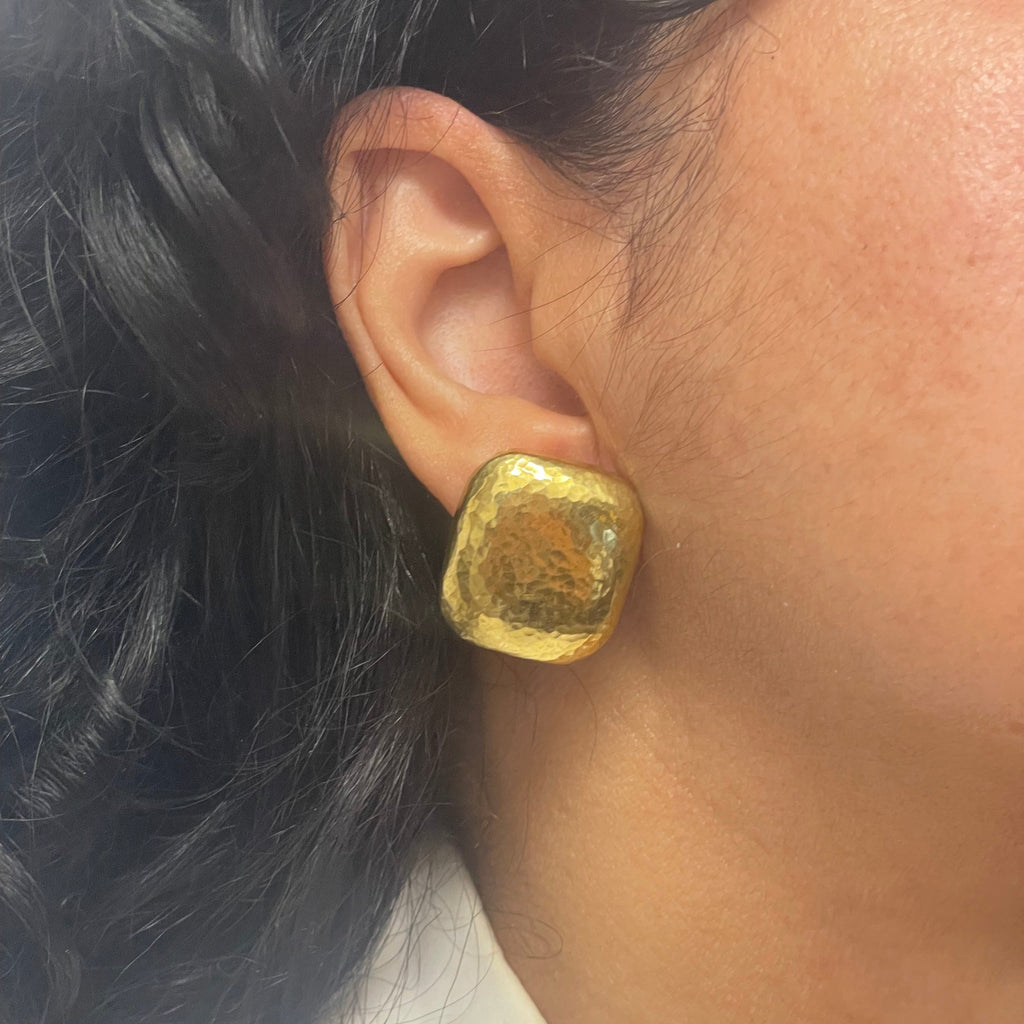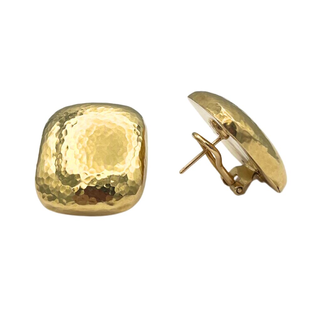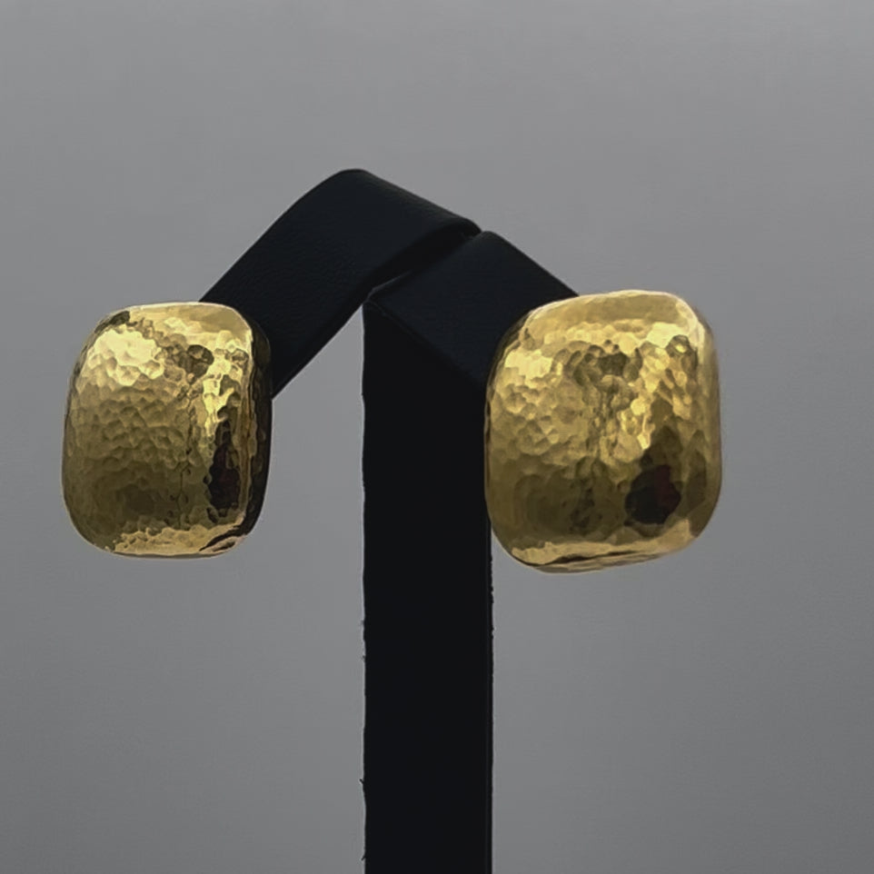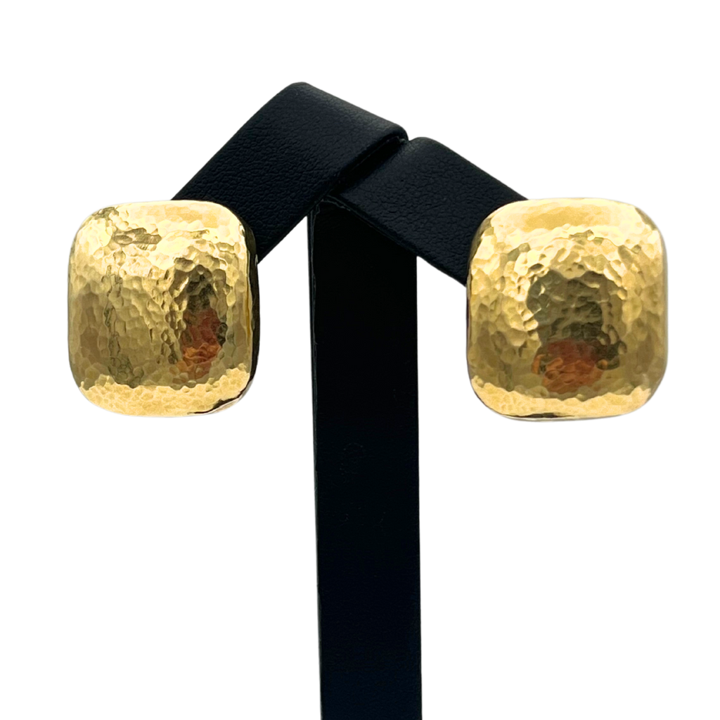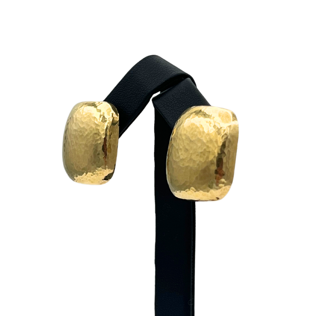 Estate Italian 18k Yellow Gold Hammered Finish Earrings Circa 1970