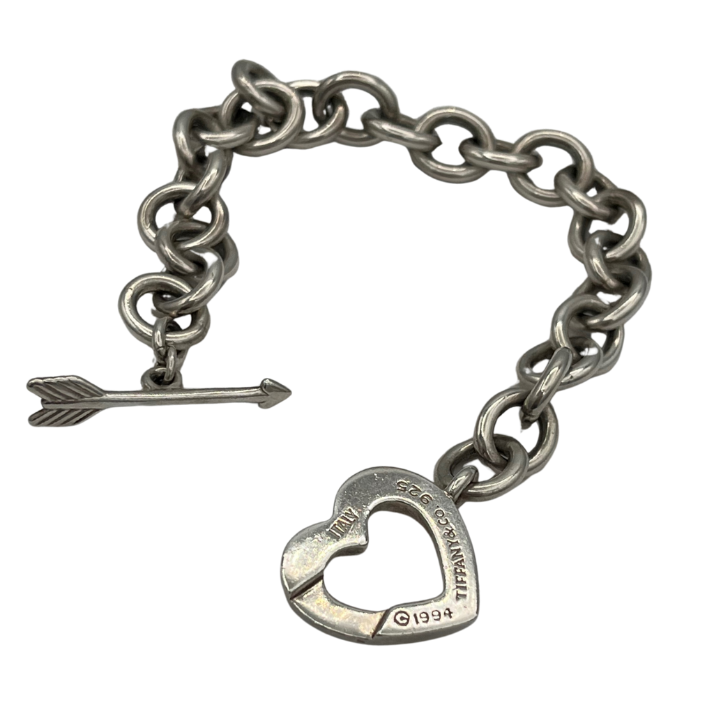 Beautiful Tiffany & Co. Sterling silver arrow and heart chain link bracelet c.1994.