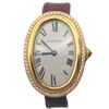 Vintage 18k yellow gold Baignoire de Cartier watch with velvet Must de Cartier leather strap.
