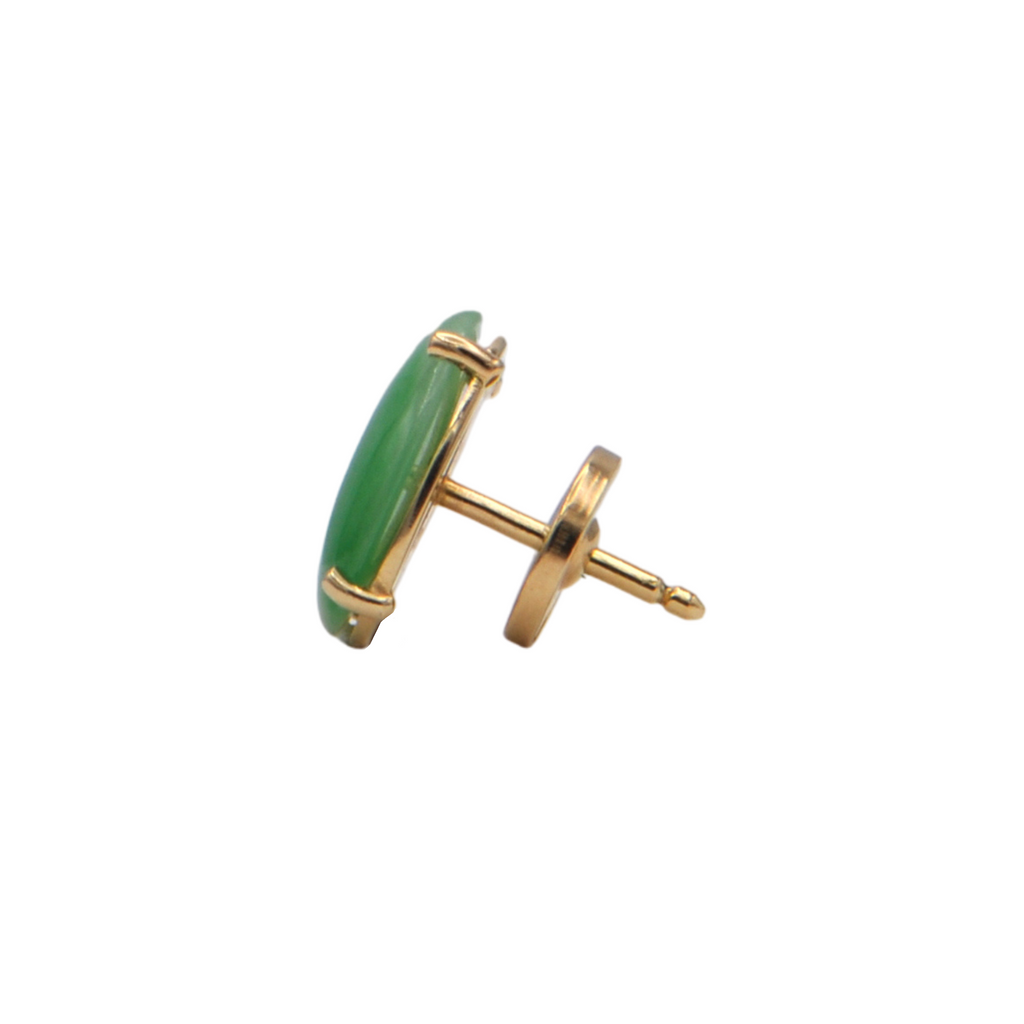Delightful pair of glossy apple green "Jadeite" jade stud earrings. These earrings attach with 'ALPA' backs. Jadeite also know as imperial jade.