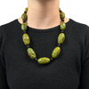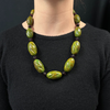 Bakelite: Thirteen (13) carved, individually knotted oval marbled spinach green Bakelite beads measuring from (25.11 mm x 15.21mm) to (38.95 mm x 21.67 mm).