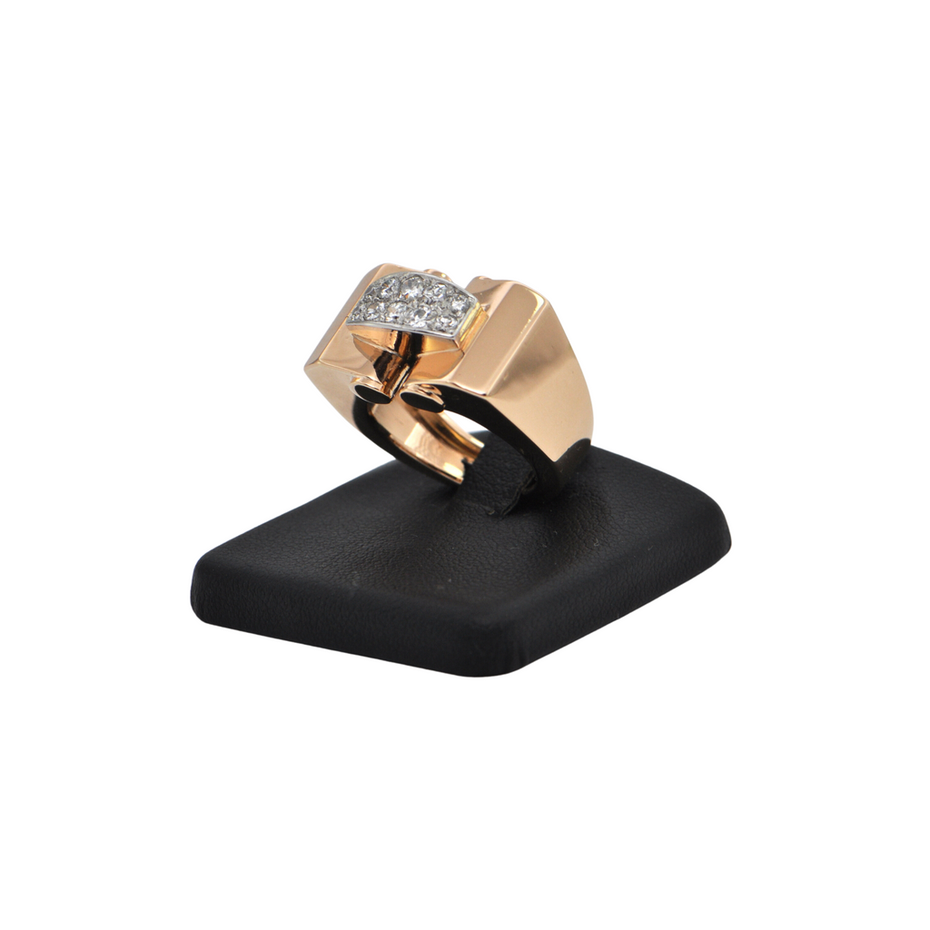 Elegant French early retro high polish 18k rose gold diamond ring circa 1930.