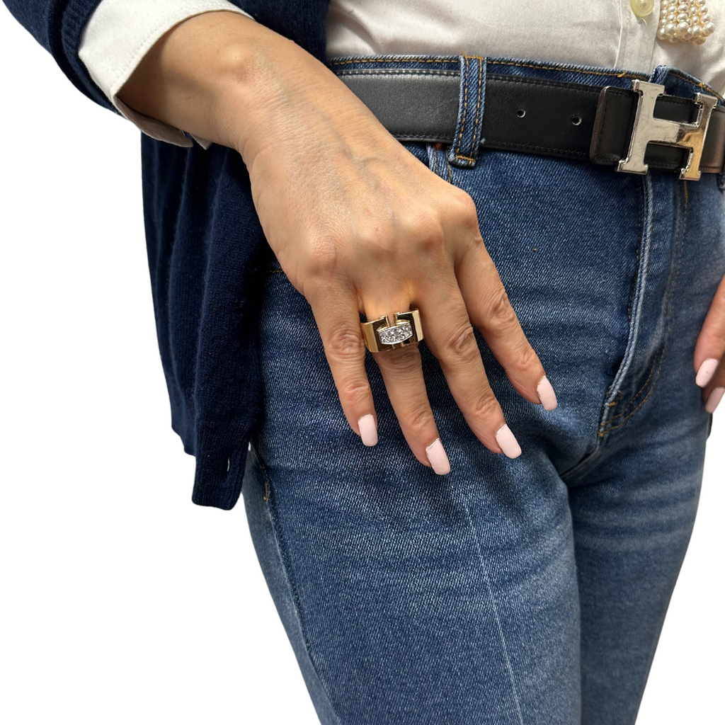 Diamonds: Ten (10) pavé set, round brilliant cut diamonds (x2) and Old Swiss cut diamonds measuring approximately from 2.0 - 2.7mm each in diameter with an estimated VVS-VS1 clarity, estimated F/G color, and estimated 0.55ct total diamond weight.