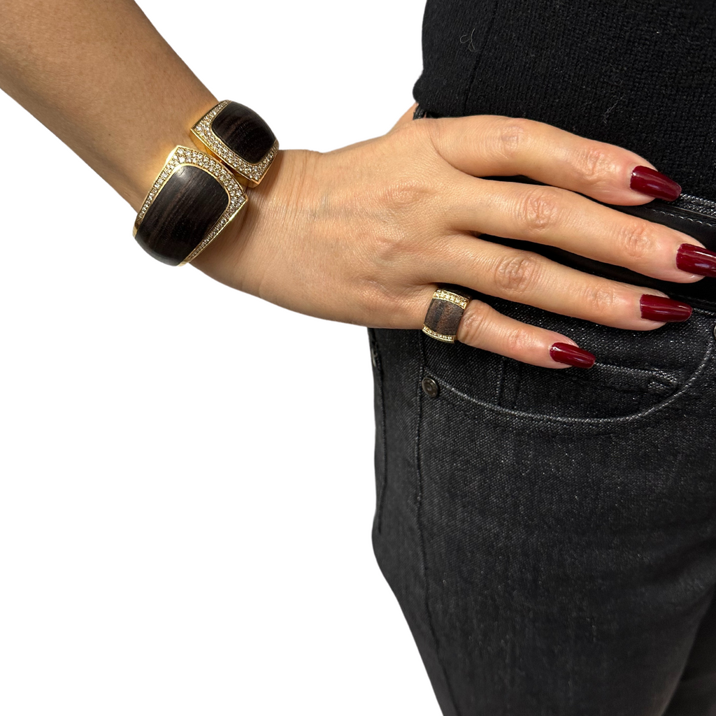 Estate Signed 'Binder' Modernist Diamond & Wood 18K Gold Ring (C.1990)