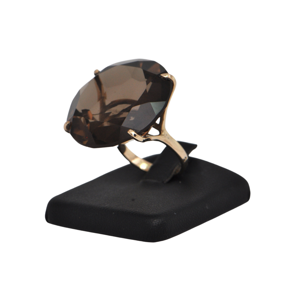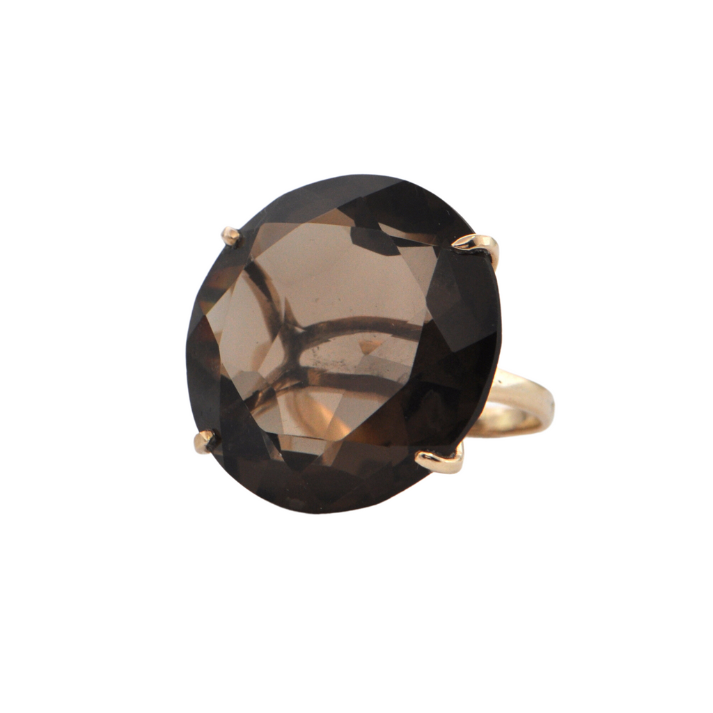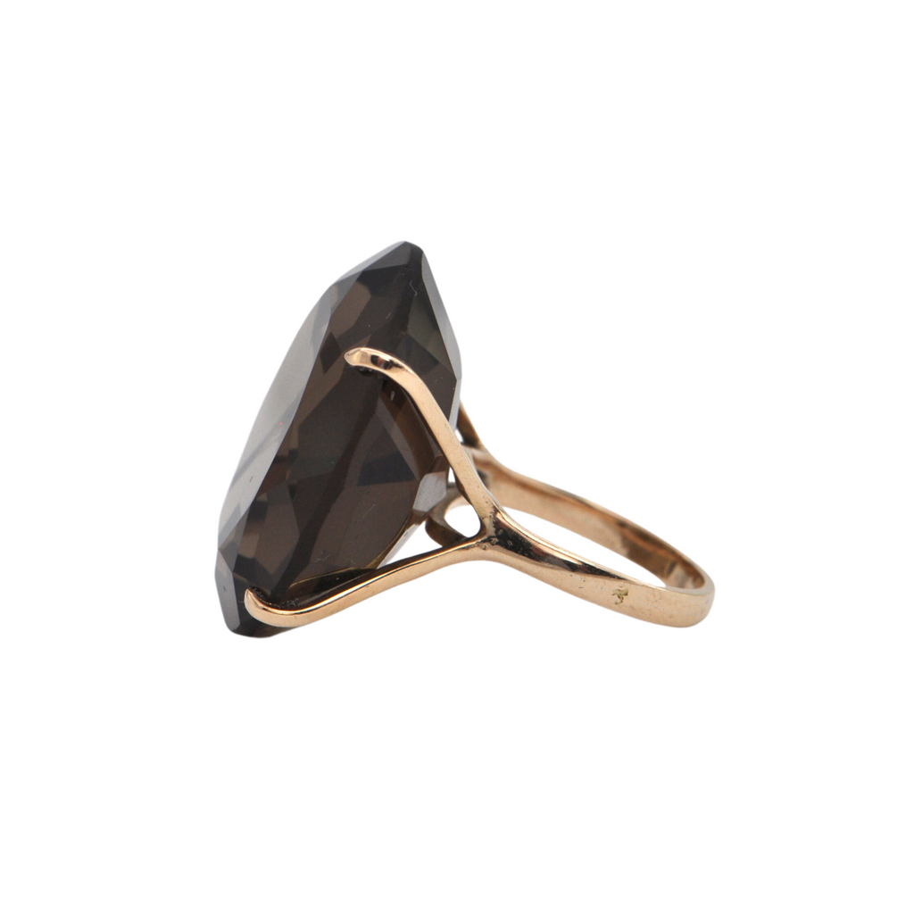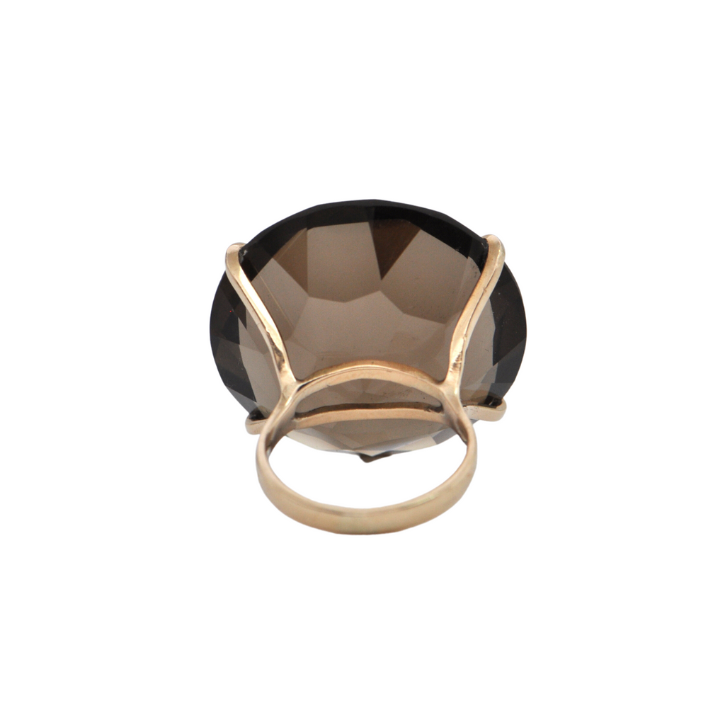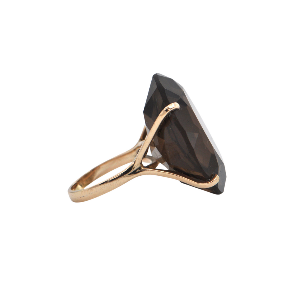 Impressive retro 51.3ct smoky quartz 14k yellow gold cocktail. Talk about a conversation starter!