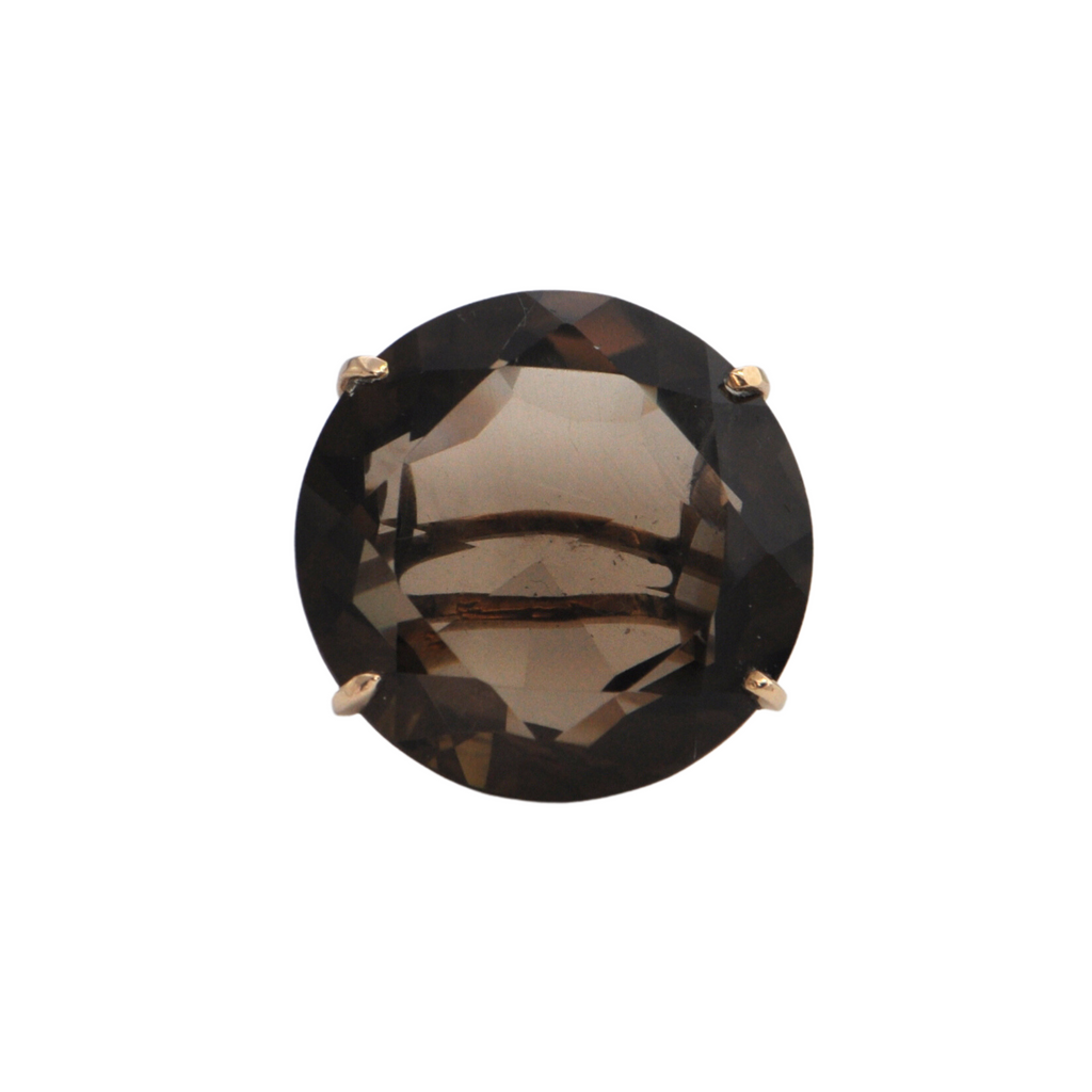 Smoky Quartz: One (1) prong set, round faceted smoky quartz measuring approximately 27.8 mm in diameter with an estimated weight.
