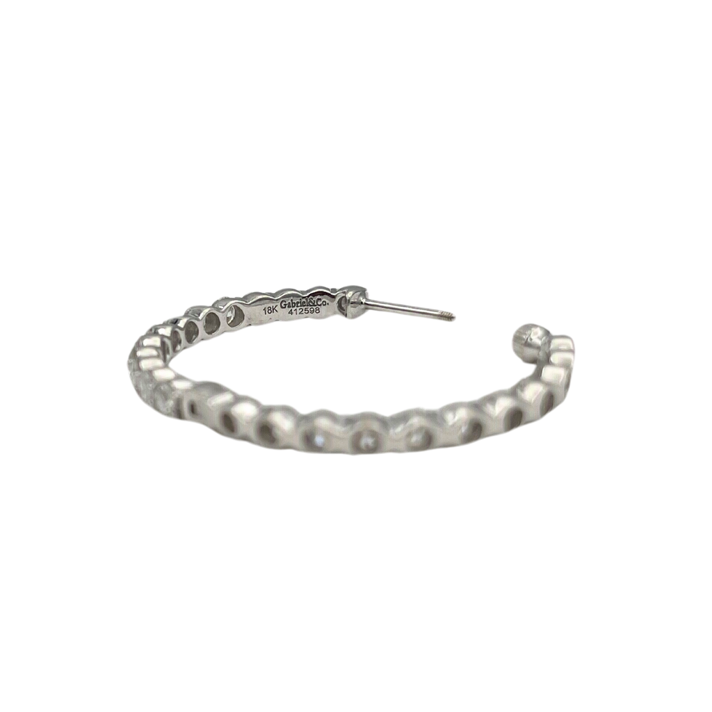 The perfect size inside-outside diamond hoop earrings. The earrings are 1-1/4'' in diameter making them not large yet still have large enough diamonds to get noticed. The closing mechanism is an easy to use screw on post which gives the extra level of safety when wearing these earrings.