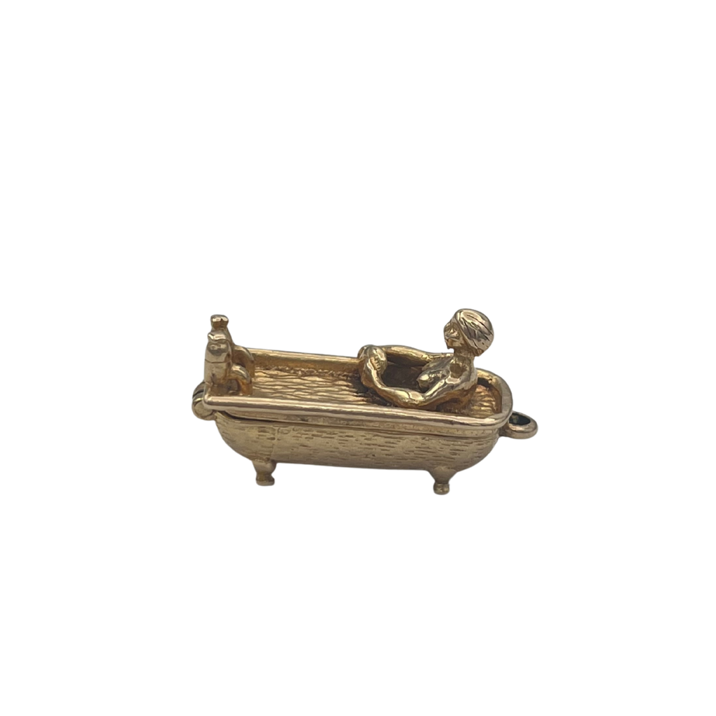 Vintage 9k Yellow Gold Hinged Bathtub Charm