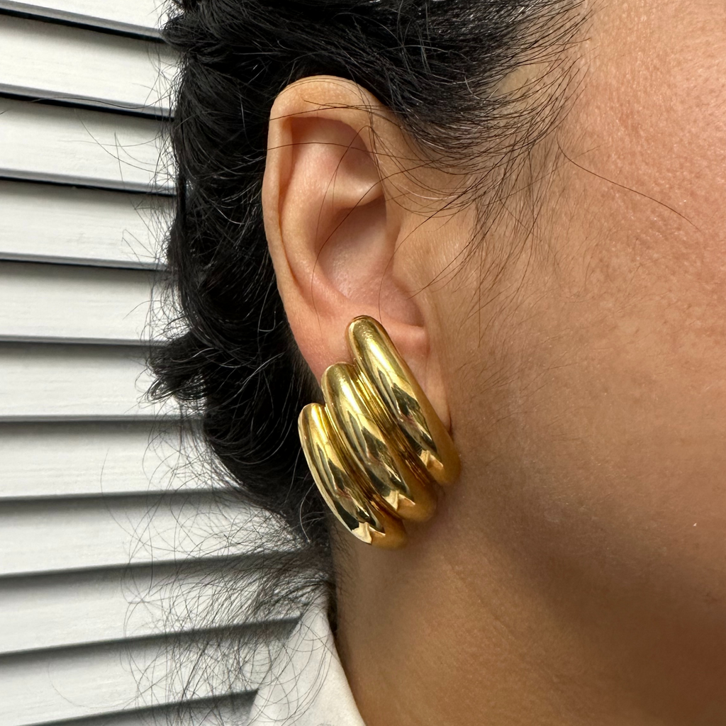 Mid-Century Italian Oversized 18K Gold Clip-On Earrings