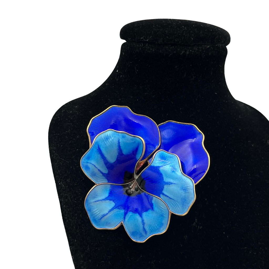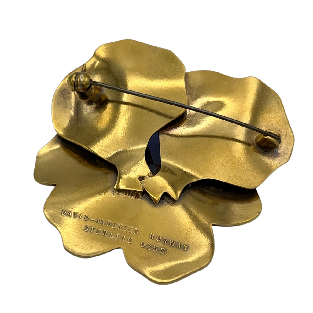 Signed David-Andersen sterling silver and enamel blue pansy brooch. C.1950's.