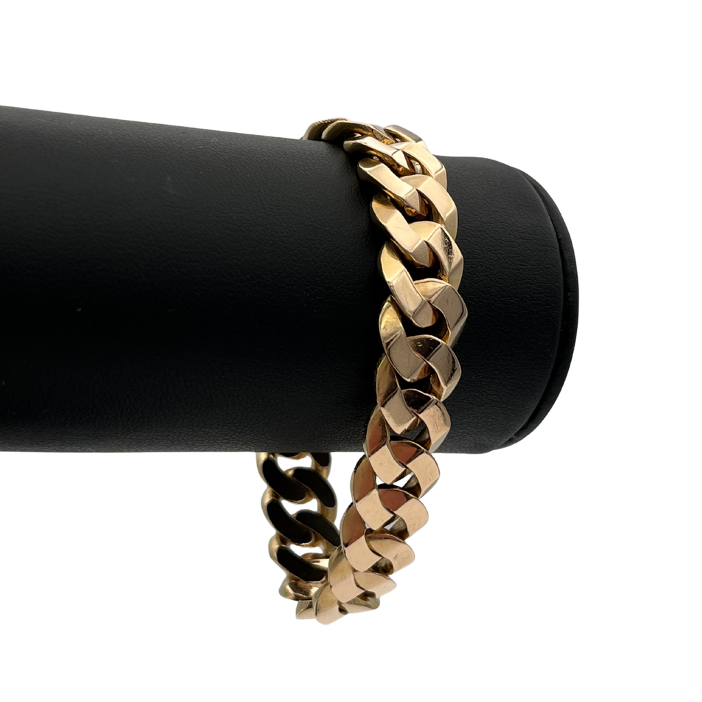 Vintage French 18k Rose 11.0mm Gold Round Curb Link Chain Bracelet