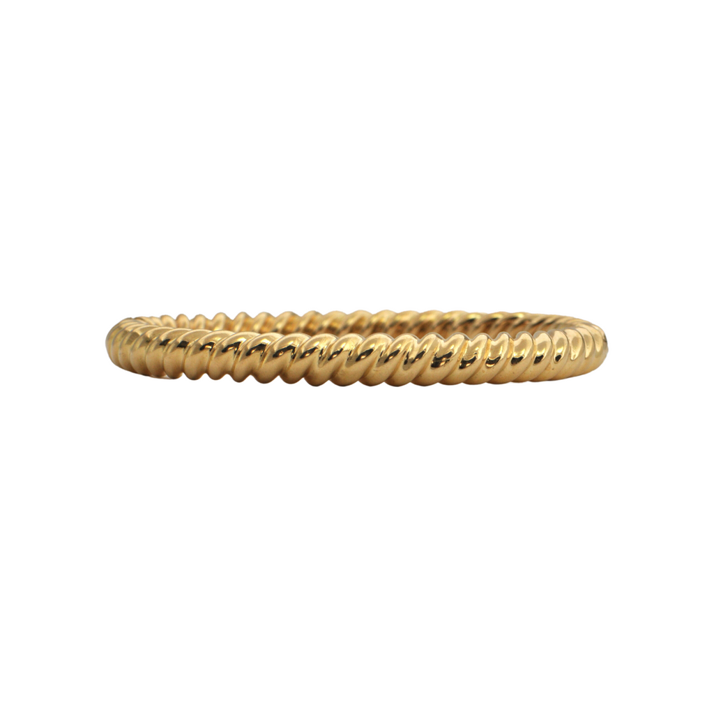 Sleek and stylish 18k yellow gold twisted oval hinged bangle bracelet. There are two available.
