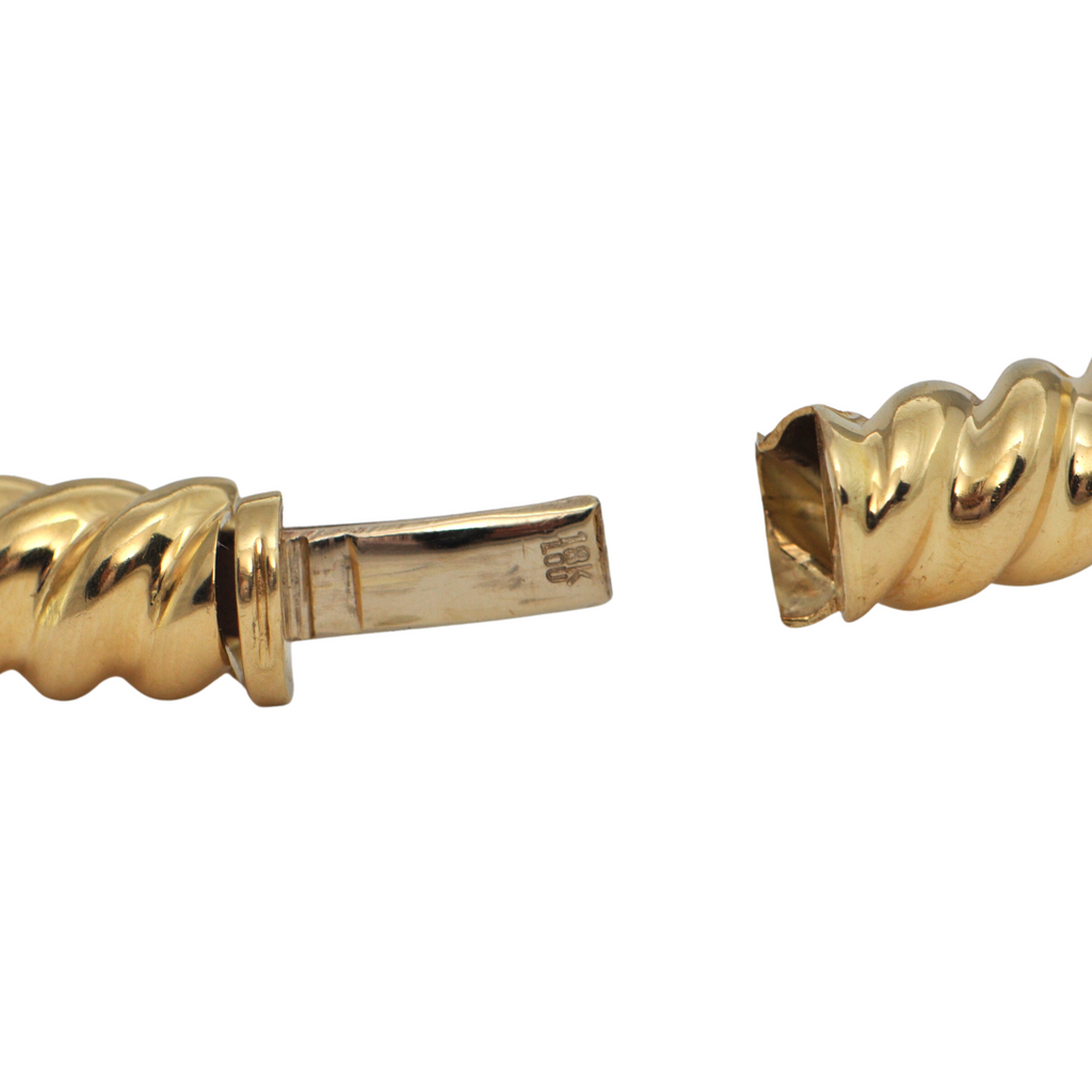 Vintage Italian 18k Gold Oval Hinged Twisted Cable Bangle Bracelet